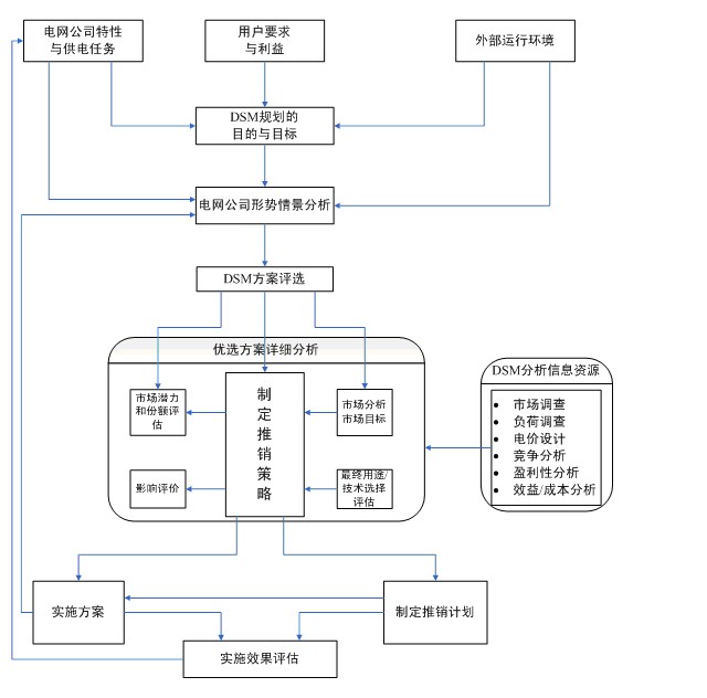 需求侧管理的成功实施需要进行周密的规划和实施管理,其流程框图如下: